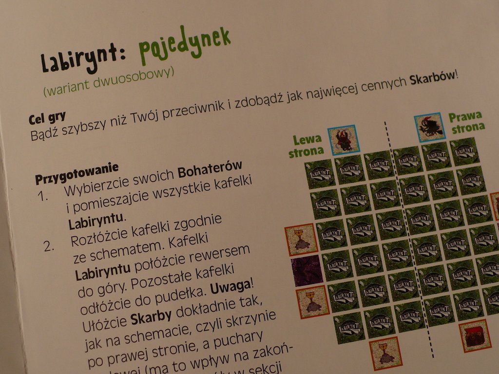 Instrukcja nie pozostawia miejsca na wątpliwości jasno opisując sposób przygotowania do rozgrywki i zasady zabawy. Wątpliwości rozwiewają czytelne grafiki.